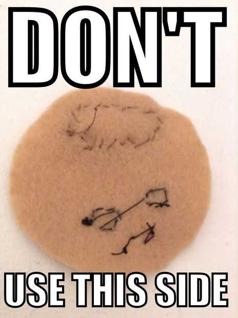 Ahora usted puede coser los 2 círculos crema juntos. No te olvides de dejar un espacio para rellenar.