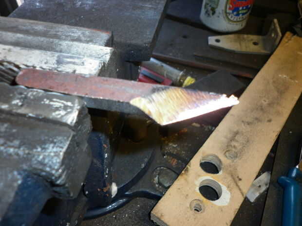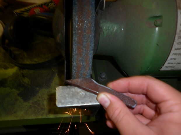 Una vez que el acero se enfría y es ahora más suave y más fácil de trabajar con usted puede empezar a pulir la forma de su cuchillo. Para esto puede utilizar una amoladora angular, amoladora de banco, lijadora de banda o archivos. Moler hasta que la pieza de trabajo es suave y casi alcanzado el contorno.