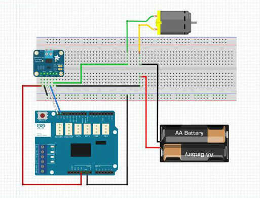 Finalmente Coloque el motor para completar el circuito de prueba. Los terminales puede colocar en cualquier dirección, sólo cambiará si el motor gira en sentido horario o contrario las agujas del reloj.