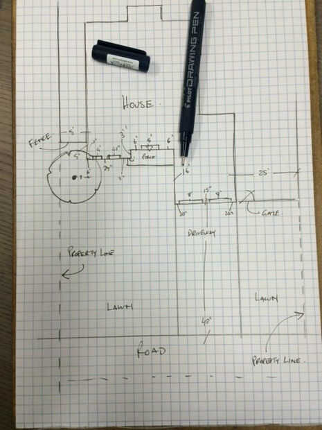 Para estudiar una propiedad fácilmente uso un lápiz con borrador y un tablero de clip están parados en un área de su patio delantero donde podrá ver una gran cantidad de la casa y dibujar líneas simples representan la huella de la casa. dibujar más tarde en las puertas y ventanas y luego comienza la medición de sección por sección. Una vez completa, traer el dibujo dentro y limpiar errores en medición.
