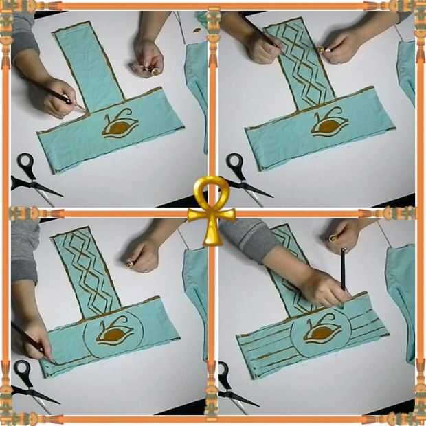 A continuación, empezar a pintar con pintura acrílica dorada. Hacer oro ojo de Horus y otras formas.