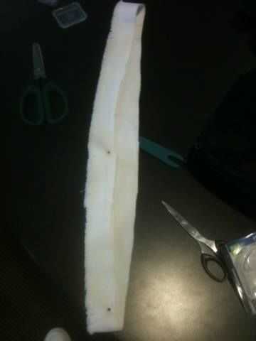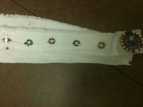 largo desea que este marco sea y la anchura de ésta, además de lo que sucede donde y tal. Dibuje hacia fuera si usted y considera lo que quizá quieras Añadir (sensor-wise, sólo puede obtener mejor!) Hice mi hoja 2" de ancho y 54" de largo. Plan a donde vas a poner el Velcro para mantenerla en un bucle y en su lugar y también hacer una pequeña bolsa para el paquete de baterías ir, cerca posible de la Flora. Lo usa, sólo para ver cómo larga o cómo mucho usted necesita acortar la tela. Puse la batería justo encima mío en el lado opuesto, pero planeo poner un sensor de presión de velostat sobre la flora, así que puedo usar como un interruptor para dim/iluminar las luces dependiendo de lo suave o lo duro empuje hacia abajo contra él.