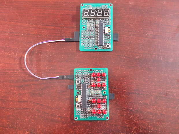 En este tutorial nos gustaría establecer comunicación entre nuestro rodillo de dados y la exhibición de 4 dígitos para que el resultado del lanzamiento de dados aparece en la pantalla. Podríamos muy fácilmente a utilizar el "rodillo de su propio" método de comunicación que hicimos antes con el "analizador de registro" y el rodillo de dados, sin embargo, en el futuro tutoriales iremos añadiendo más componentes y nos gustaría a todos ellos para poder comunicarse uno con el otro. Por lo que es mucho mejor si utilizamos un protocolo que utiliza solo dos cables y aún puede comunicarse con varios controladores de esclavo. Eso es exactamente lo que hace el TWI integrado en el Microcontrolador AVR. Así que ahora vamos a aprender cómo usarlo.