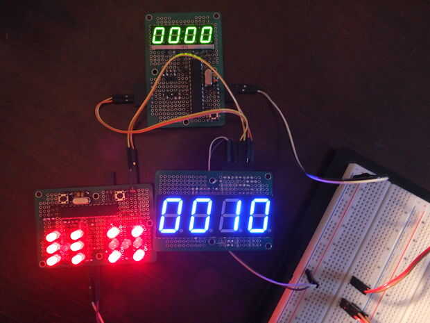 Ahora podemos escribir la rutina de comunicaciones del rodillo de dados. También es casi idéntica a la que escribió última vez excepto que nos va comunicando con dos diferentes esclavos en lugar de sólo uno. Tenga en cuenta que para cada uno de los esclavos utilice una dirección diferente. Debe modificar el código usted mismo y luego simplemente prueba con cada dirección y asegurarse de que funciona como tutorial pasado excepto con cada exhibición separada.