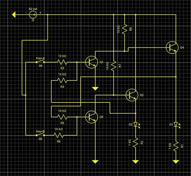 Sé que parece algo complicado pero no es tan malo. Si realizaste el ejercicio 5 en el paso anterior le resultará muy obvio. Lo único que agregué en era más grandes resistencias para limitar la corriente que va a las bases de los transistores.