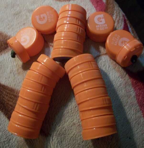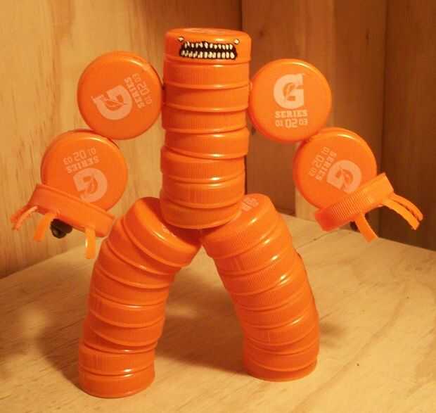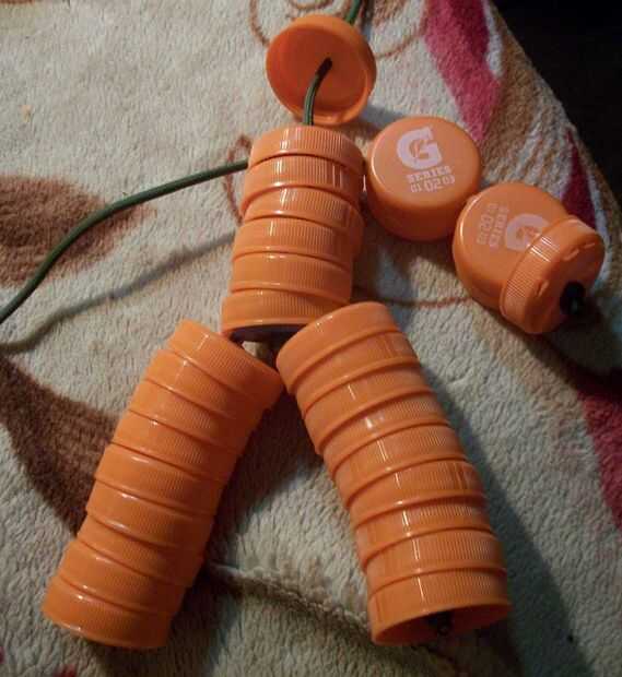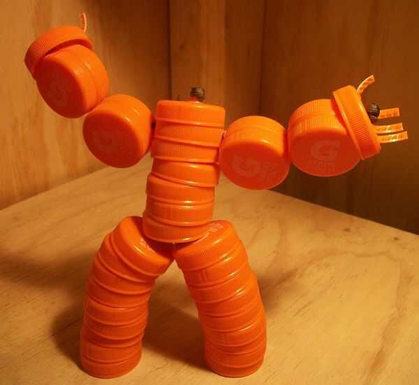 Paso 4: pila de tapas de botellas para los brazos / las piernas a las longitudes deseadas, nudo y nudo de fiador.