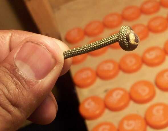Paso 1: dorar un extremo del acorde para permitir acorde pasar a través de cápsulas central perforado.