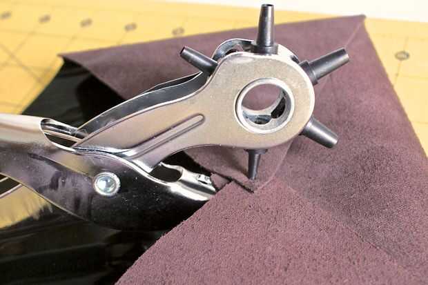 Golpear duro! Tomaré un poco de presión para hacer un corte limpio. Si usas capas más gruesas, que tendrás que perforar una capa a la vez. Puede utilizar un punzón para marcar el golpe contado a través de las tres capas, sólo hay que poner un trozo de cartón dentro para evitar daños en el interior del embrague la lezna.