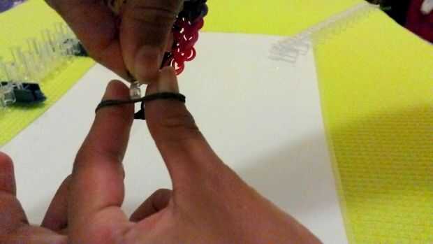 Coloque el extremo de su pulsera de escalera con el último conector usaste.