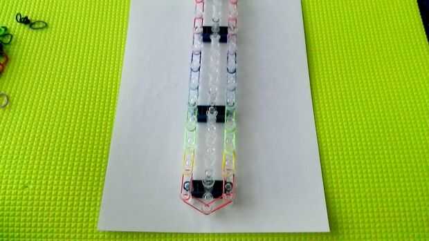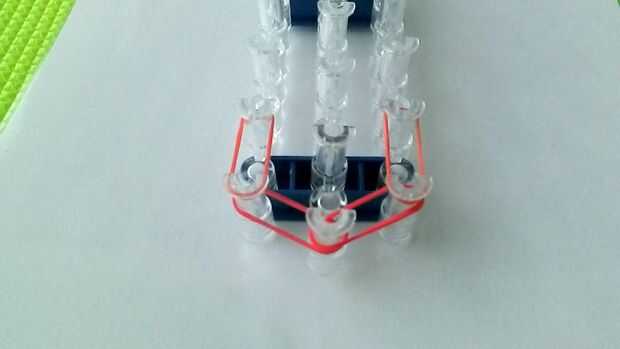 Al llegar a la cima, en lugar de ir hacia arriba, cierre mediante la colocación de las bandas en el perno central.