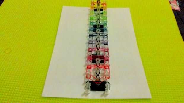 de hoy voy a mostrarte cómo hacer una pulsera de cable en el telar del arco iris es una pulsera de nivel intermediaria, pero a veces caen aparte pero no te enojes solo puede rehacerla solo te estoy dando este aviso ahora. cayó aparte en mí dos veces.