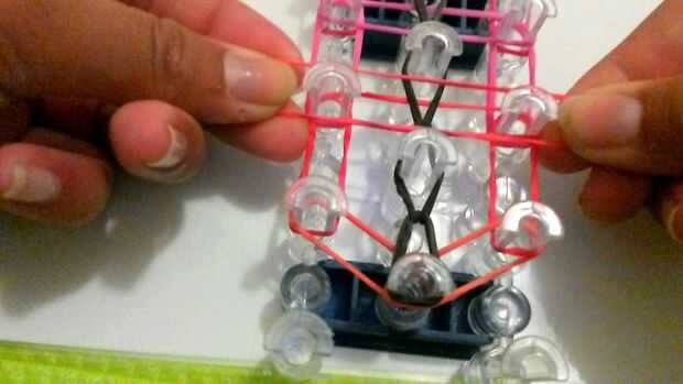 Paso 1: Lo que usted necesita Se necesita:• un telar• gomas• un gancho• un clip S o CPaso 2: Colocación de bandas Tome su primera banda y colóquelo a la izquierda. Luego tomar su segunda banda y colóquelo a la derecha. ASEGÚRESE DE QUE FLECHA TE ESTÁ