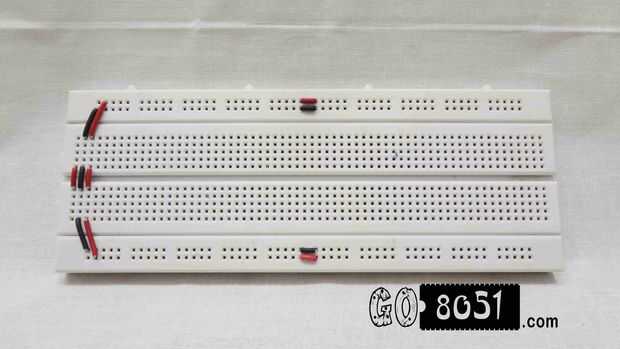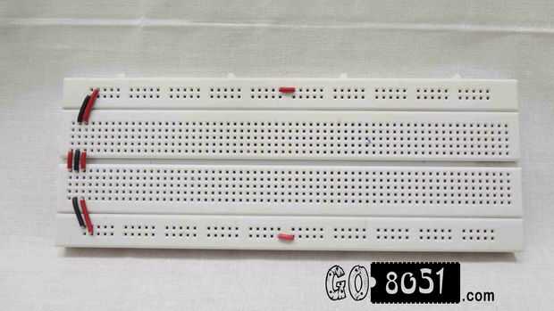 6. unir la parte media de ambos tierra y + 5v líneas que completarán la energía de alimentación en la placa.