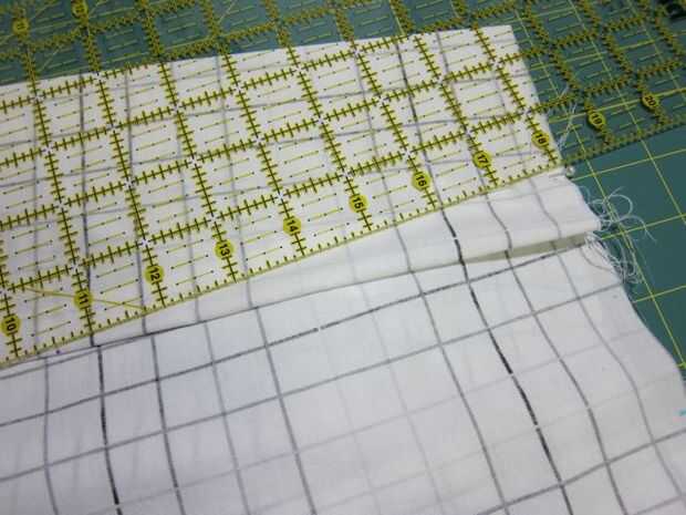 Quitar la falda de la forma del vestido y vuelta adentro hacia fuera. Coloque un pasador vertical en la parte superior de cada dardo, a continuación, utilice una regla para dibujar una línea de 8" desde el perno hasta el borde doblado del dardo. (No se dejen intimidar te — dardos son nada más apretados juntos aletas del material.) Repita este proceso para todos 4 dardos.