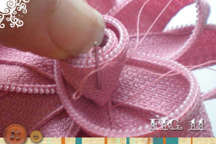 Cuando completamente se enrolla la cinta de la cremallera, coser el rollo en su base a través del centro de la flor a través a la parte de atrás del fieltro. Volver a través de (con cuidado) y repita este paso hasta que se sienta que el centro de la rodada es seguro. Cuando es seguro tie off el subproceso en el back-end.