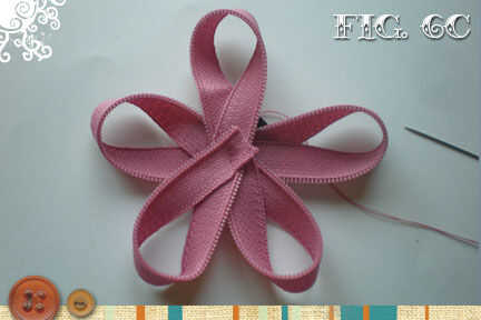 Repetir bucles pasos 4 y 5, mover la cinta al lado de la que acaba de crear. Ver figuras 6A a través de 6C. Al llegar al final de la primera cremallera