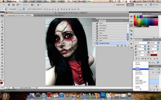 3. cambio propiedad de capa a multiplicar. Bajar la opacidad al 75%.