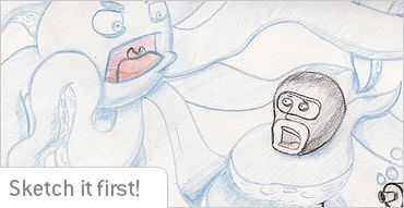 Antes de siquiera pop abrir Flash usted debe siempre en bruto el concepto primero. Aunque es simple bloques y elementos para establecer la composición. Más cachondeo a tu alrededor al principio determina cuánto tweaking y refinamientos tediosos tendrá que aplique a su producto final. A menudo, se realmente libremente llamo elementos varias veces hasta obtener la sensación general de ellos y empezar a acodar a los roughs uno encima del otro hasta que tenga una forma agradable y equilibrada. En el bosquejo de pulpo por encima, es un poco más detallada de las que atacaría generalmente un dibujo, porque se utilizaba para un proyecto. Sin embargo, si te detallamos su imagen al principio, significa que usted no tendrá que preocuparse por agregar y tocar su línea vectored trabajo cuando colorante y sombreado.