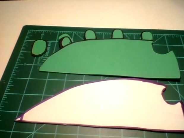Haz alguna espuma de arte (el especie delgada) y cortar una forma como esta. Asegúrese de que quede le / la cara de sus clientes antes de que pegue algo. Luego, córtelo hacia fuera. Después de que se hace, trazarlo y otro corte.