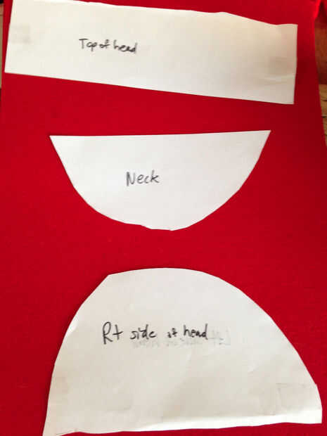 Después de doble control, el patrón cubrirá su patrón cabeza traza sobre el fieltro rojo para actuar como base de la peluca.