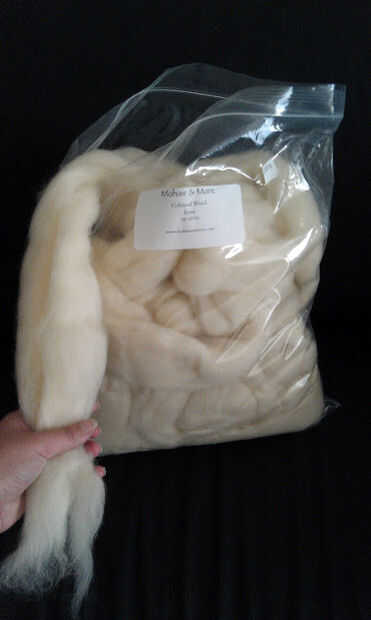 1. comenzar con alguna lana. no realmente importa qué tipo de lana es, como se enumera como "mecha" compró 2 libras pensando que es mejores tener demasiado que entonces no suficiente - y joder, 2 libras es mucho! Me dio mio online (Mohair y más) por unos 40.00 enviados. el tipo exacto es Colonial lana en crudo (color). Arriba es una foto de una libra (16 onzas, cuando la bolsa estaba lleno) de la mina.