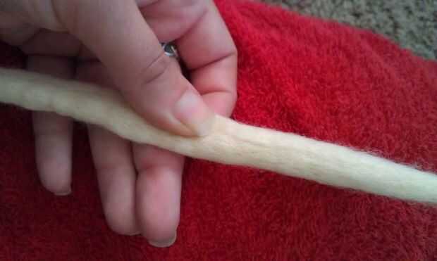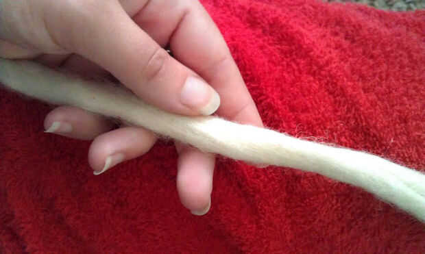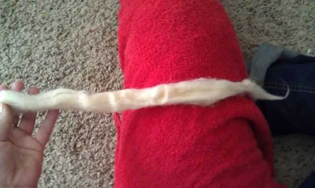 3. Coloque el temor de lana húmedo en tire y la toalla de pierna y frotar otra vez! Usted notará que la lana es felting mucho mejor y consigue más densamente compactada. YAY!