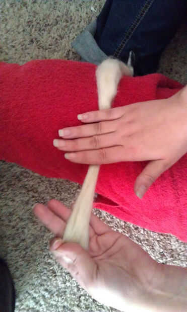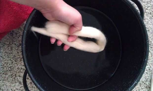 OK, así que una vez que han pasado unos 2-5 min con el spray botella, la lana y con una toalla-el semi-temor debe ser algo juntos / conseguirlo bastante agrupados para arriba dependiendo de cómo la lana es estera y si es lol cooperante. no será totalmente apretado, pero debe ser algo en forma. es tiempo para el siguiente paso, ahora es el momento para realmente poner la lana en agua caliente.