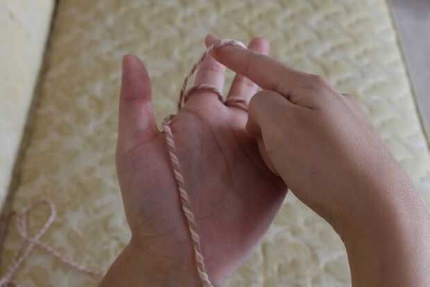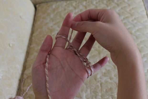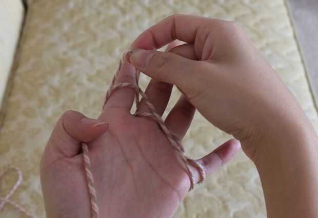 Levantando la línea recta que está en la palma y va debajo de él para recoger el lazo de hilo en el dedo índice. Levante, suficiente para poner el dedo índice a través del lazo.