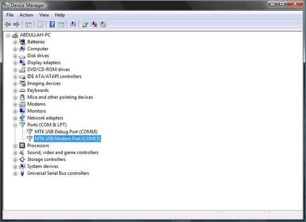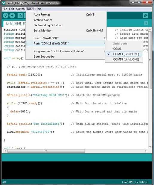 - Seleccione el puerto del MTK USB módem (como el mío es COM 13 en captura de pantalla) en el IDE de Arduino.