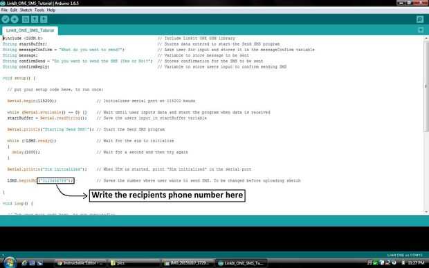 - Copie el código dado en su computadora, recordar para cambiar el número donde desea enviar un SMS a en el código. He incluido una captura de pantalla para mostrar dónde que está para su referencia.