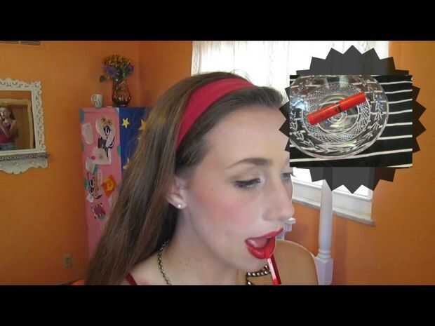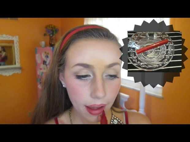 18. entonces agarré un palo labio DIY que hice de un crayón rojo.