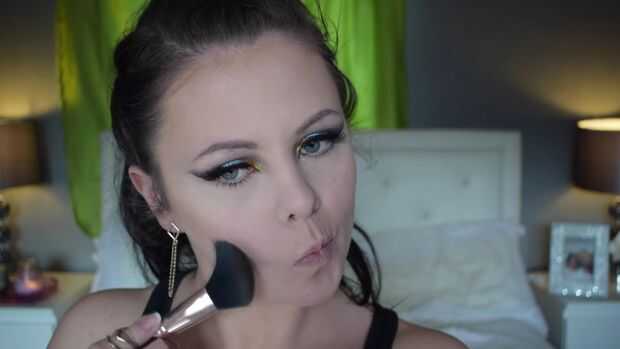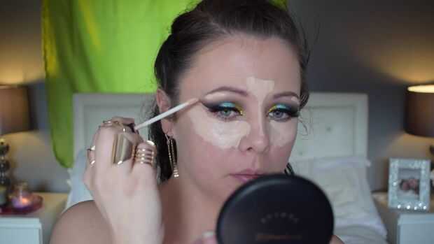 Vaya en mi cara. Primero aplico un corrector para el bajo mentón, nariz, ojos, frente y también en el hueso de la ceja. Esto es para resaltar estas zonas. Luego ir con una licuadora de belleza y mezcla esto y establecer este húmedo polvo translúcido. Entonces con mi polvo bronceado aplicar esto a la muerte de mis mejillas, nariz, mandíbula y línea del cabello.