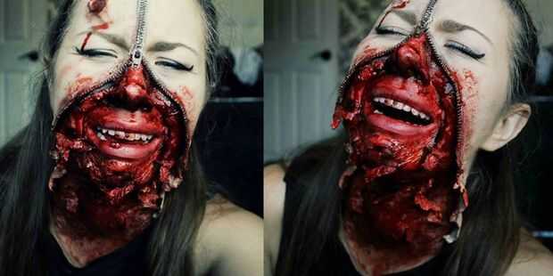 Tutorial de maquillaje de HalloweenPaso 1: cara.1. aplicar una base y 2. polvo3. y 4. Sombras, usar sombra de ojos marrón med, hacer sombras a tus mejillas y narizPaso 2: ojos.5. 6. y 7. Utilizar lápiz de ojos negro y hacer líneas a tus ojosPaso 3: "