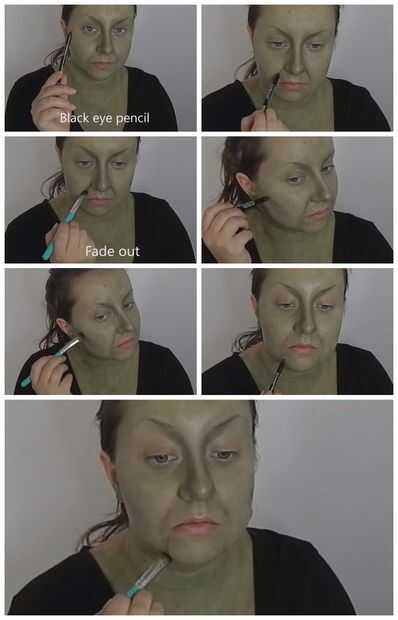 Dibujar líneas para mi piel con lápiz de ojos negro (donde quiero hacer las arrugas) y les desaparezca con cepillo, hago pequeños golpecitos para desaparecer, no frotando.