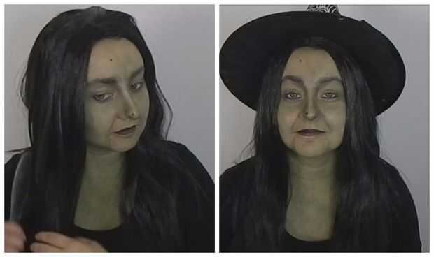 Señora FrankenstinaPaso 1: caraUsé pintura de cara verde y lo aplico a mi cara y el cuelloUsé pintura de cara negra para conseguir sombras a mis mejillas y frente.Paso 2: las sombrasAfilar las sombras un poco con lápiz de ojos negro y sombra de ojos