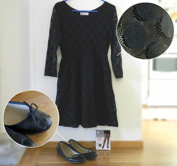 Elegí un vestido simple, calcetines con rayas, zapatos y medias.