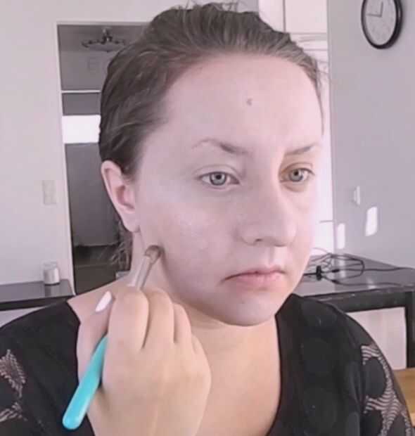 1. en primer lugar vas a cebar, aplicar base y corrector para la cara como siempre.2. luego vas a querer dar forma tus pómulos con un color marrón oscuro. Apliqué esto a lo largo de los huesos de la mejilla y luego la curva alrededor de las manzanas