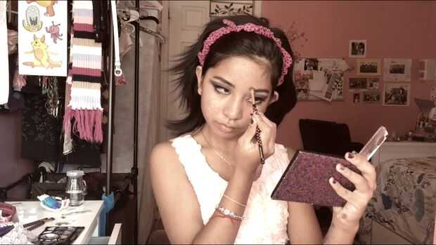 Tutorial de maquillaje de sirena (halloween)Paso 1: cara-Fundación-Polvo-Cubrir mis cejas un poco con correctorPaso 2: labios-Lipgloss brilloPaso 3: ojos-Hacer líneas con delineador líquido.-Aplicar lápiz de ojos blanco para mi línea de flotación-Hac