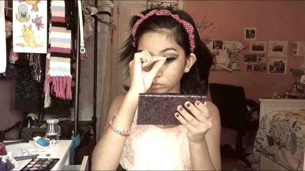Tutorial de maquillaje de sirena (halloween)Paso 1: cara-Fundación-Polvo-Cubrir mis cejas un poco con correctorPaso 2: labios-Lipgloss brilloPaso 3: ojos-Hacer líneas con delineador líquido.-Aplicar lápiz de ojos blanco para mi línea de flotación-Hac