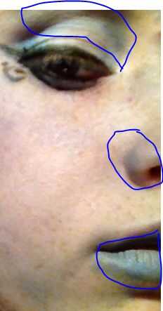 Labios - aplique vanisher labio o Fundación y luego repasar con brillo de labios azul, azul barra de labios o sombra de ojos azul en un tono para que coincida con su "piel". Utilicé una combinación de Fundación, brillo de labios azul y sombra de ojos azul. NO COMER ESTAS COSAS SE TE ENFERME!