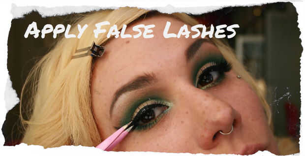 En primer lugar, medir las pestañas contra el ojo y recortarlas más cortos si fuera necesario. Forma las pestañas doblándolas en forma de herradura durante unos 30-60 segundos. Aplique el pegamento de pestañas (negro o tonos oscuros si lo tiene) en una delgada línea a la banda de las pestañas usando una espátula, entonces permita que el pegamento se seque por unos 30 segundos antes de poner en tus pestanas. Me parece divertido fácil de usar unas pinzas o los aplicadores que vienen a veces con pestañas falsas! Les golpee en su lugar usando una espátula o el extremo posterior de un cepillo pequeño. Para fusionar perfectamente tus propias pestañas con las pestañas falsas, rizar tus pestañas y el falsies una vez que el pegamento se haya secado y luego aplicar mascara para mezclar los dos juntos.