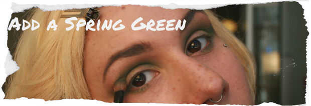 Con un cepillo de sombra de ojos suaves mediana, añadir una sombra de ojos verde de primavera a su pliegue y se funden en la sombra de transición color marrón cálido.