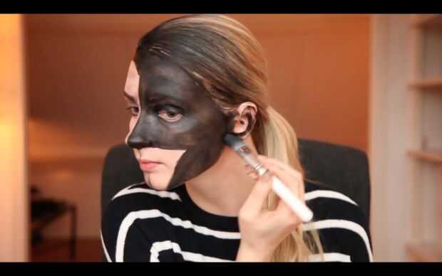 Tutorial de maquillaje de bruja HalloweenPaso 1: la piel. 1. Utilice la pintura de cara verde y aplicarlo a mi cara y el cuello.2. usar pintura negra y hago sombras a mi nariz y mejillas.Paso 2: las arrugas.Usted debe ver el video que usted puede rea