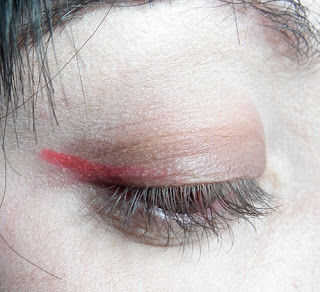 Con una sombra de ojos roja intenso con la ayuda de un cepillo de trazador de líneas del ojo crea una mirada de trazador de líneas del ojo de gato y aplicarlo justo en el borde superior de tu línea del latigazo en las esquinas sólo como se muestra a continuación en el cuadro