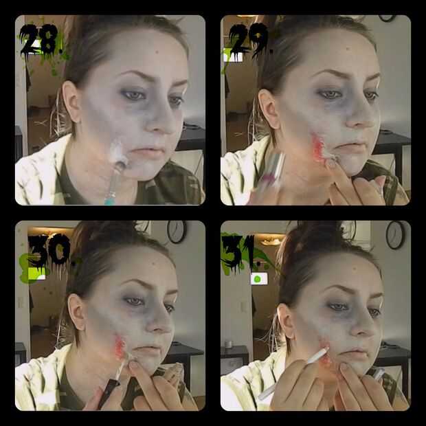 29. a continuación, aplicar lápiz labial rojo para representar la sangre.