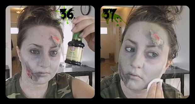 Tutorial de maquillaje de HalloweenPaso 1: cara.1. aplicar una base y 2. polvo3. y 4. Sombras, usar sombra de ojos marrón med, hacer sombras a tus mejillas y narizPaso 2: ojos.5. 6. y 7. Utilizar lápiz de ojos negro y hacer líneas a tus ojosPaso 3: "