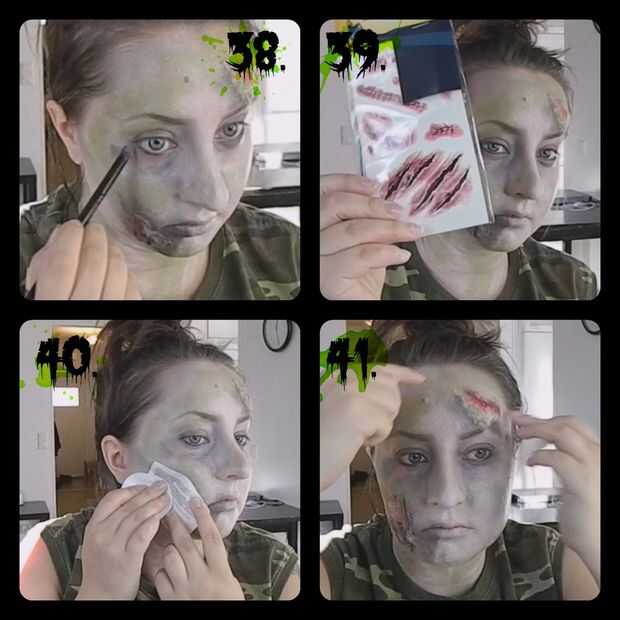 38. entonces que retocar mi maquillaje un poco, para hacer estas contusiones se vea mejor. Y también aplico un poco más lápiz de labios rojo debajo de mis ojos.