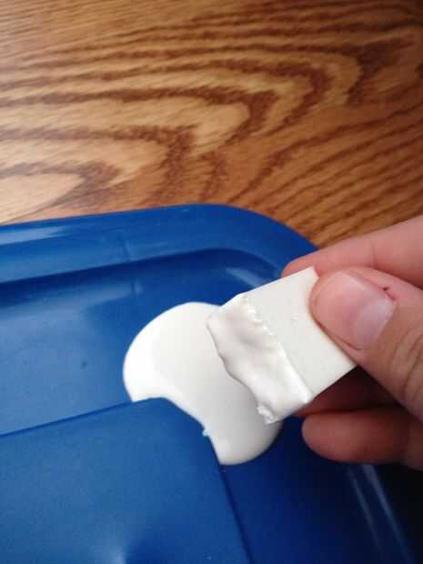 Pour un látex líquido sobre una superficie y mojar la esponja cosmética en él