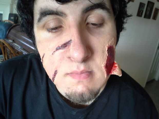 PRECAUCIÓN muy sangrientoPaso 1: Material Aquí es lo que se necesita asustar a tus amigos y familiares: látex líquido (se puede utilizar pegamento si usted es alérgico al látex), falsa sangre, piel color maquillaje, tejidos y maquillaje como aplicar