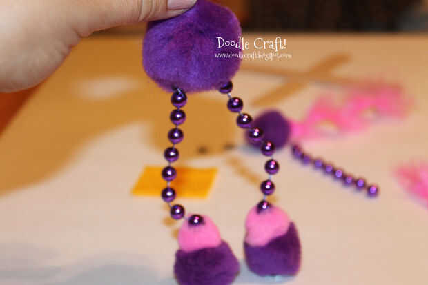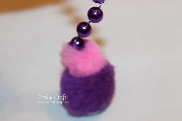 Tome una cadena cordón y pegamento caliente a la pom pom pequeño.